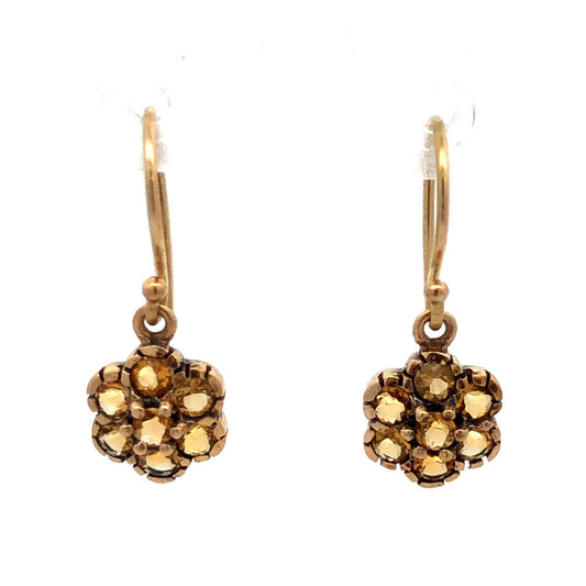 Vintage 14K Yellow Gold Round Citrine Flower Dangle Hook Earrings