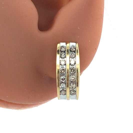 Designer 14K Yellow Gold Channel Set Diamonds Oval Drop Stud Hoop Earrings