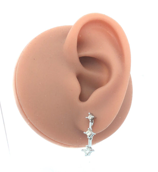 Designer 14K White Gold Princess Cut Diamond Dangle Drop Stud Earrings