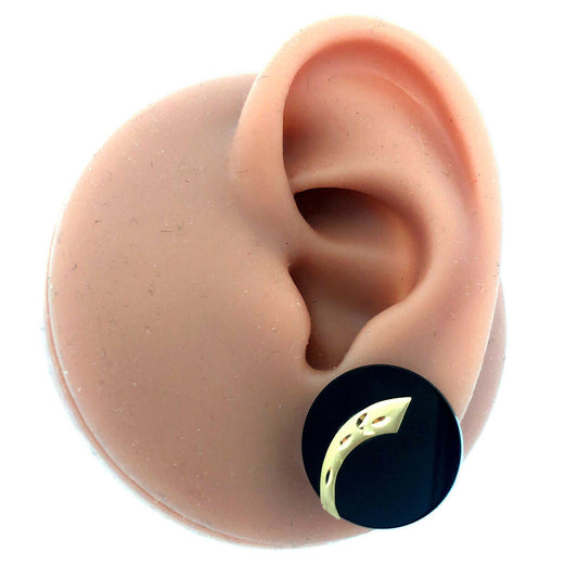 Retro 10K Yellow Gold Leaf Etched Black Resin Modernist Statement Stud Earrings