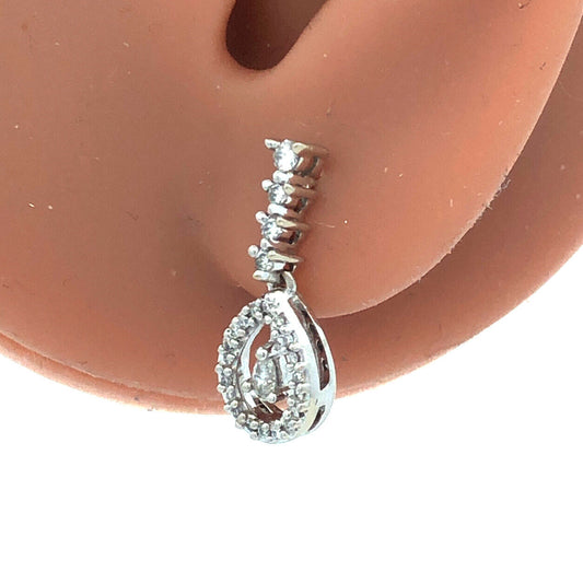 Designer 14K White Gold Pear Round Diamond Dangle Drop Earrings