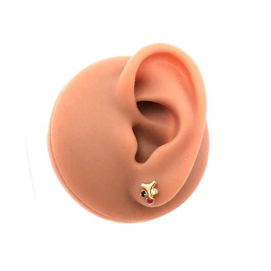 Vintage 14K Yellow Gold Sapphire Ruby Diamond Floral Cluster Stud Earrings