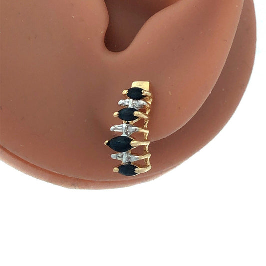 Designer 10K Yellow Gold Marquise Sapphire Diamond Accent Stud Earrings