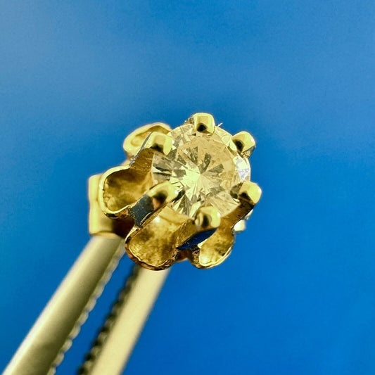 Vintage 18K Yellow Gold Round Diamond Flower Shape Screw Back Stud Earrings
