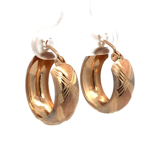 Designer 14K Yellow Gold Textured Round Puffy Snap Hoop Earrings