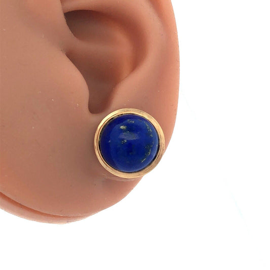 Vintage 14K Yellow Gold Round Cabochon Blue Lapis Lazuli Stud Earrings