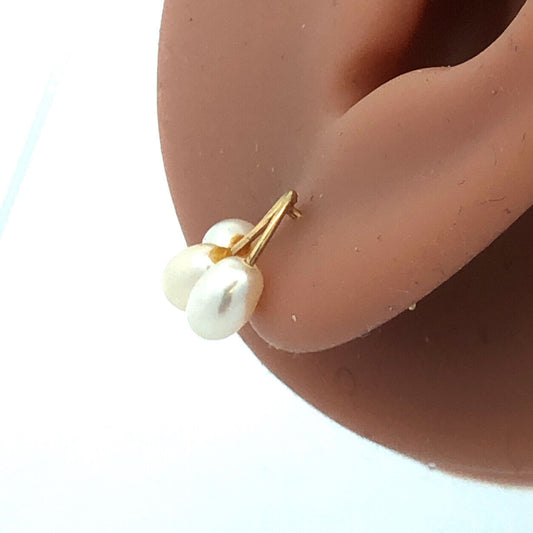 Designer ZZ 14K Yellow Gold Three Oval Pearl Drop Stud Earrings