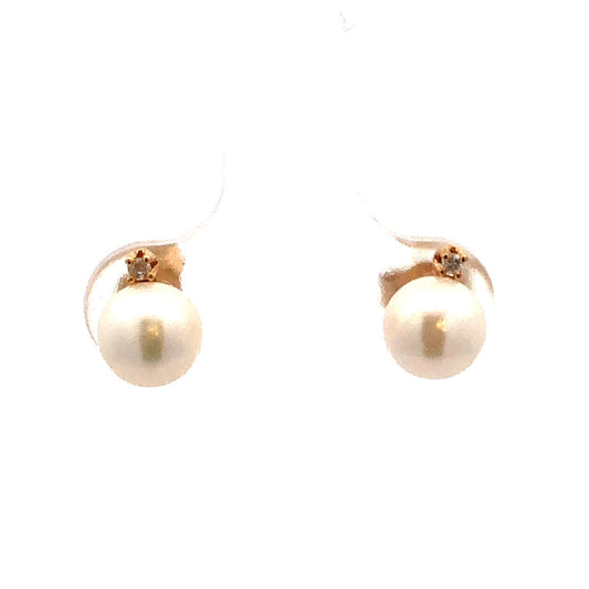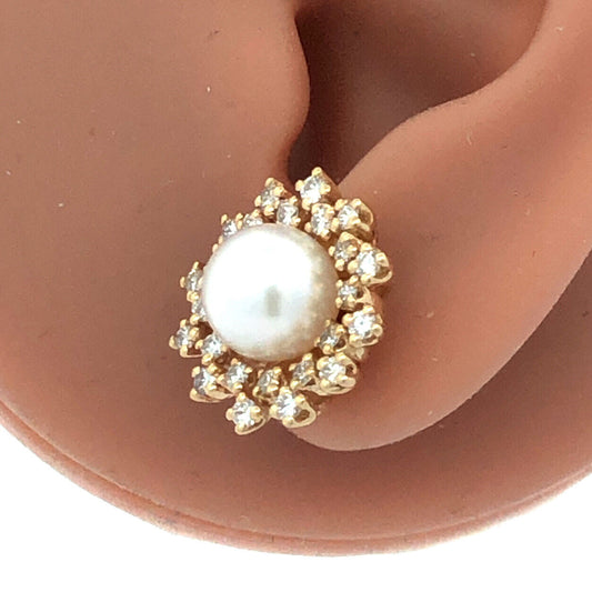 Estate 14K Yellow Gold Pearl White Topaz Accent Round Stud Earrings