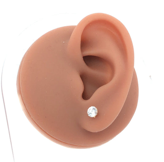 14K Yellow Gold Round Cubic Zirconia Solitaire Stud Earrings