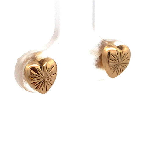 Beautiful 14K Yellow Gold Textured Heart Shaped Butterfly-Back Stud Earrings