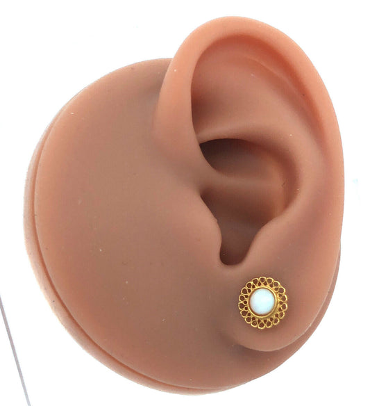 14K Yellow Gold Opal Filigree Detail Stud Earrings