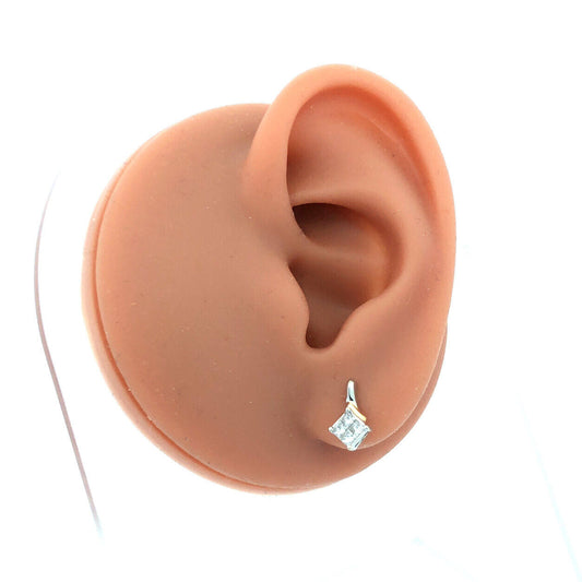 Designer 14K White & Yellow Gold 0.13ct Princess Diamond Stud Earrings