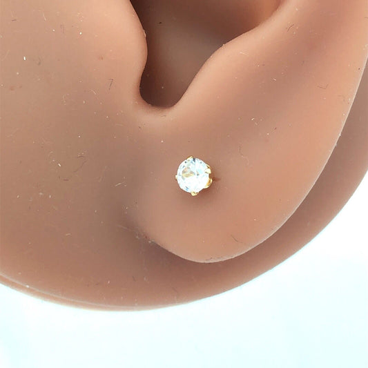 Designer 14K Yellow Gold Round Cubic Zirconia Everyday Starter Stud Earrings