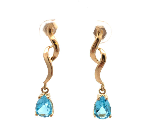 Designer ATL 14K Yellow Gold Pear Cut Blue Topaz Modernist Dangle Stud Earrings