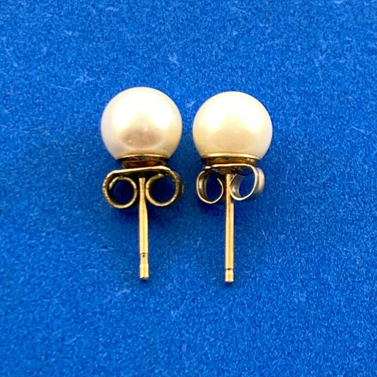 Estate 14K Yellow Gold Round Pearl Stud Earrings