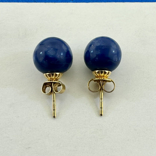 Vintage 14K Yellow Gold Blue Lapis Lazuli Round Ball Stud Earrings
