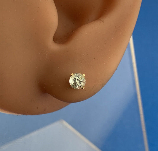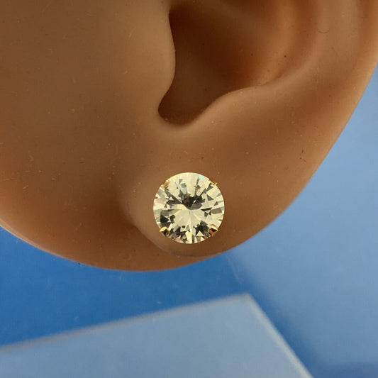 Gorgeous 14k Yellow Gold Round Cut White Diamond Friction Back Stud Earrings