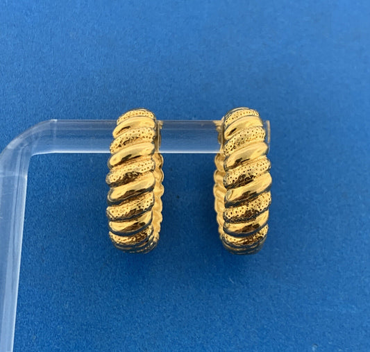 Designer 14K Yellow Gold Florentine Polished Ribbed Classic Hoop Earrings