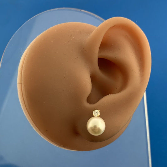Designer 14K Yellow Gold Pearl June Anniversary Bridal Statement Stud Earrings