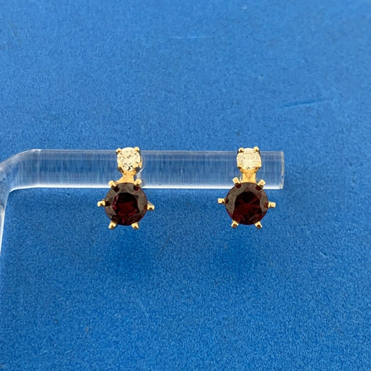 14K Yellow Gold Garnet Diamond Accent January Anniversary Stud Earrings