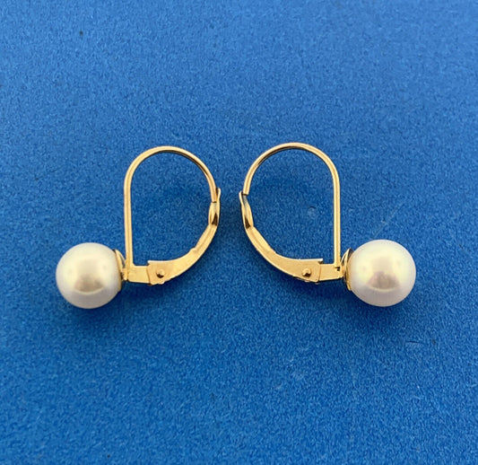 Lovely 14K Yellow Gold Pearl June Wedding Anniversary Leverback Drop Earrings