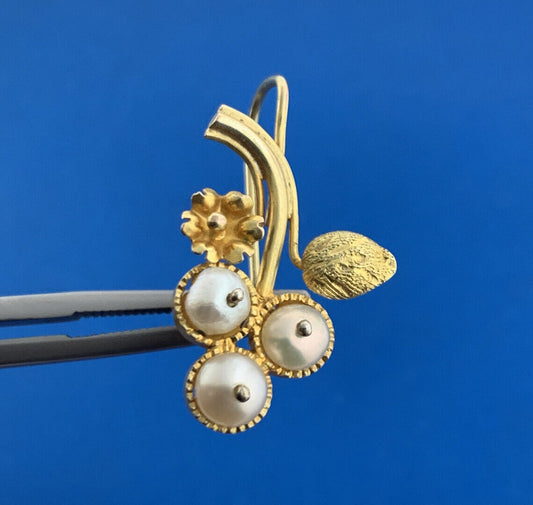 Vintage 14K Yellow Gold Pearl Cherry Blossom Dangle Drop Slide Earrings
