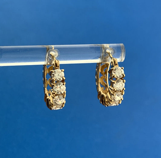 Designer 14K Yellow Gold Cubic Zircoina CZ Huggie Hoop Earrings