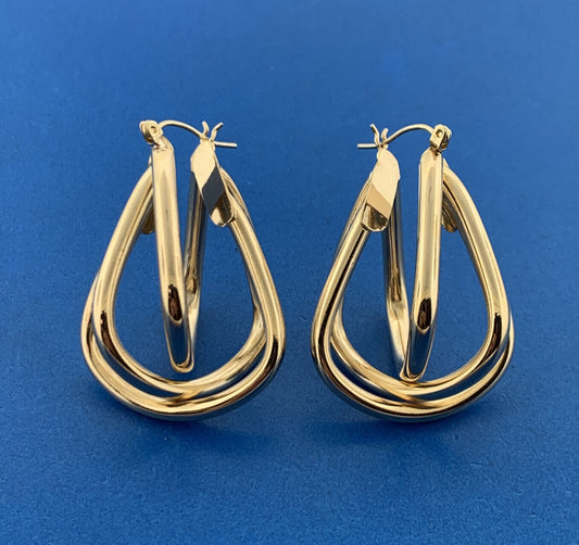 Retro 14K Yellow Gold Modernist Tubular Statement Pear Bell Dangle Drop Earrings