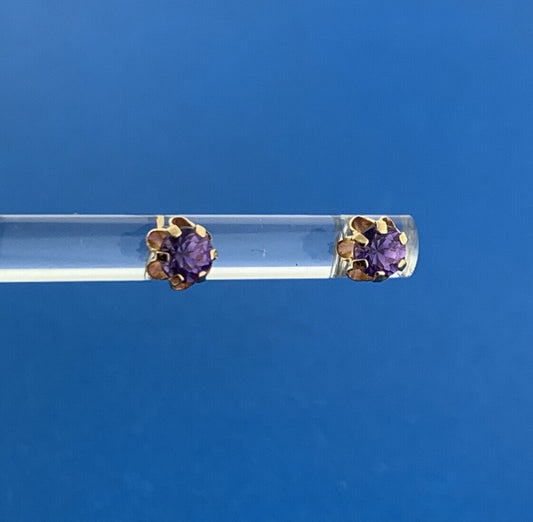 Retro 14K Yellow Gold Purple Sapphire September Occasion Buttercup Stud Earrings
