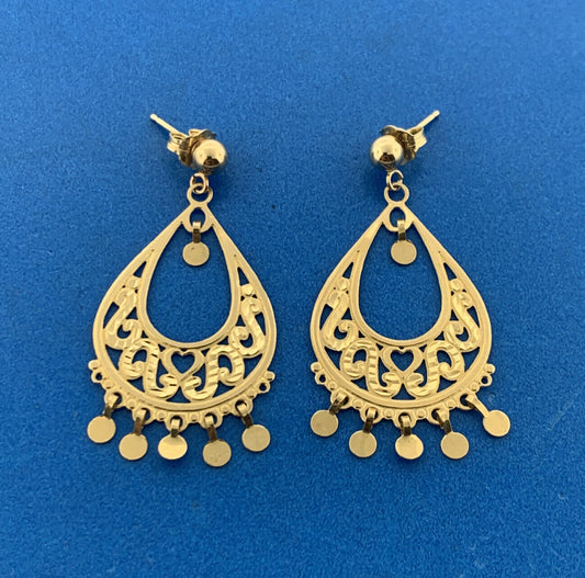 Michael Anthony MA 14K Yellow Gold Open Work Heart Scroll Dangle Drop Earrings