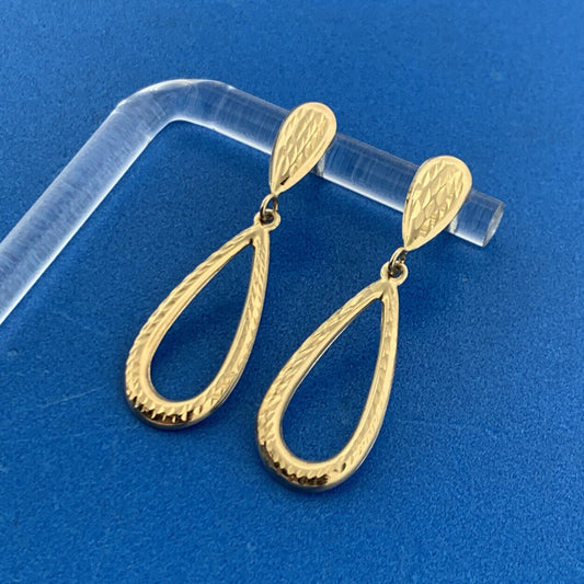 Designer JJT 14K Yellow Gold Etched Diamond Cut Design Pear Dangle Drop Earrings