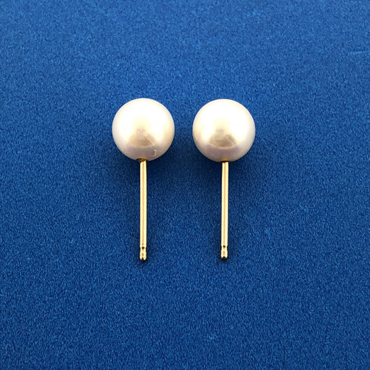 Gorgeous 14k Yellow Gold 7 mm White Pearl Precious Stud Earrings