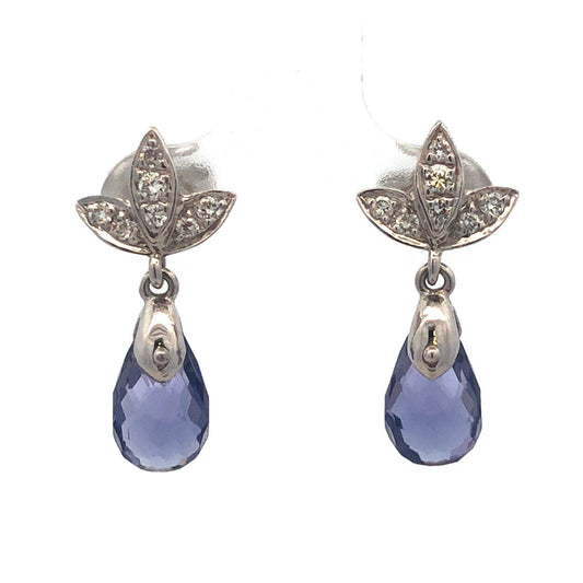 Gorgeous 14k White Gold Faceted Tanzanite Diamond Floral Dangle Earrings