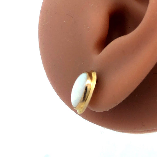 14K Yellow Gold Oval Opal Cabochon October Sweetheart Anniversary Stud Earrings