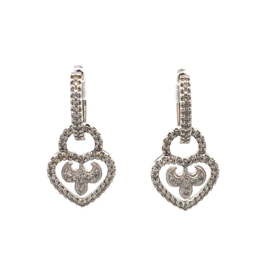 Michael Cristoff 18K White Gold Diamond Fleur De Lis Heart Drop Dangle Earrings