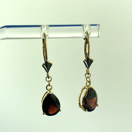 14K Yellow Gold Garnet Pear January Anniversary Drop Dangle Hook Earrings