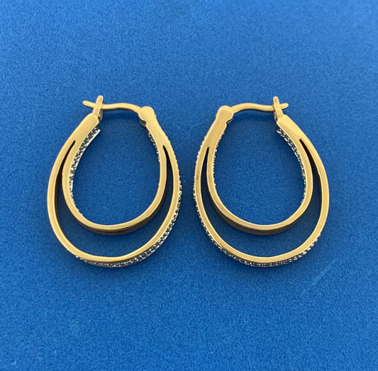 Designer Vermeil Sterling Silver 925 Round 4 Diamond Twin Oval Hoop Earrings