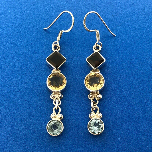 Retro 925 Sterling Silver Citrine Blue Topaz Smokey Quartz Drop Dangle Earrings