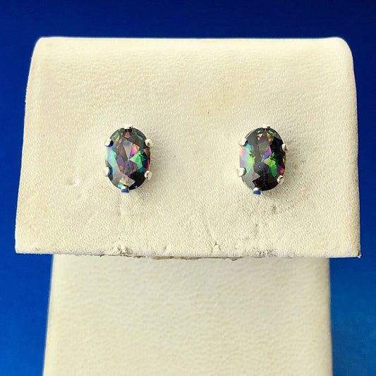 Designer Sterling Silver Oval Mystic Topaz November Anniversary Stud Earrings