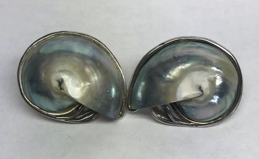 Vintage Sterling Silver 925 Abalone Sea Snail Shell Statement Earrings S162