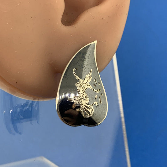 Vintage Siam Sterling Silver Nielloware Goddess Manimekhala Clip Earrings
