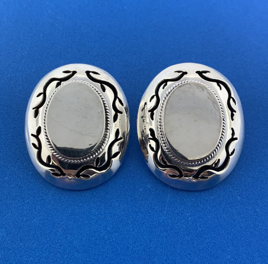Sterling Silver 925 Native American Concho Design Engravable Oval Disc Earrings