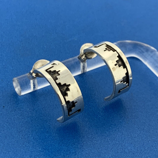 Vintage Scott Skeets Navajo Sterling Silver Storyteller Half Hoop Stud Earrings