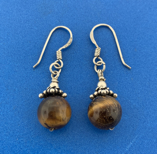 Designer 925 Sterling Silver Tiger's Eye Bead Ball Drop Dangle Hook Earrings