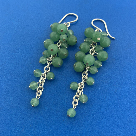 Designer 925 Sterling Silver Aventurine Bead Grape Cluster Drop Dangle Earrings