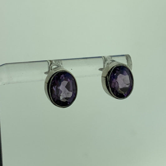 Designer SJ 925 Sterling Silver Oval Amethyst February Anniversary Stud Earrings