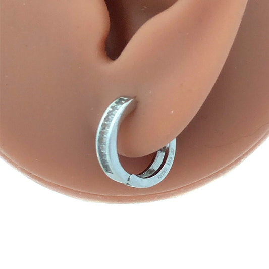 Designer N 925 Sterling Silver Baguette Cubic Zirconia CZ Huggie Hoop Earrings