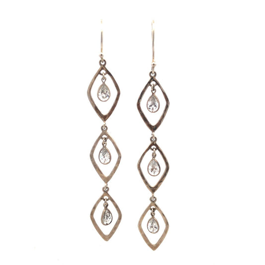 Estate 925 Sterling Silver Pear Cubic Zirconia CZ Oval Modernist Dangle Earrings