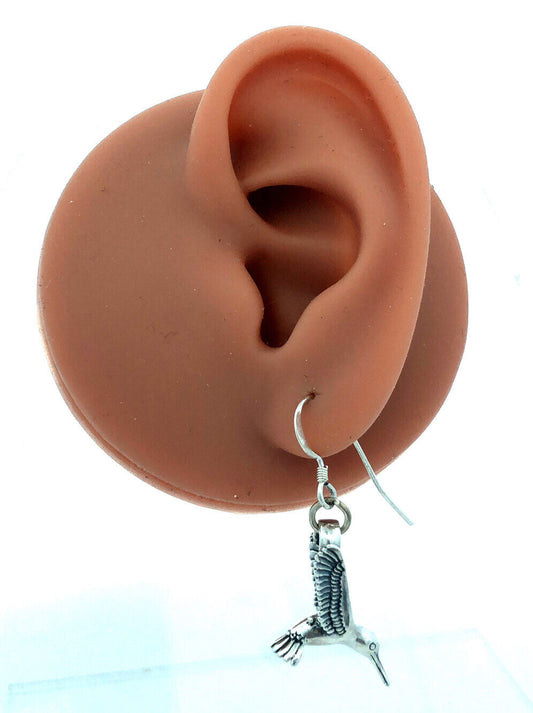 Vintage Designer 925 Sterling Silver 3D Hummingbird Drop Dangle Hook Earrings