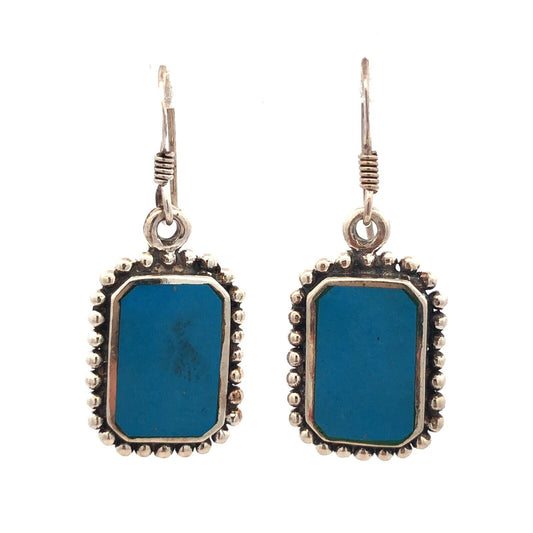 925 Sterling Silver Vintage Rectangle Turquoise Dangle Hook Earrings
